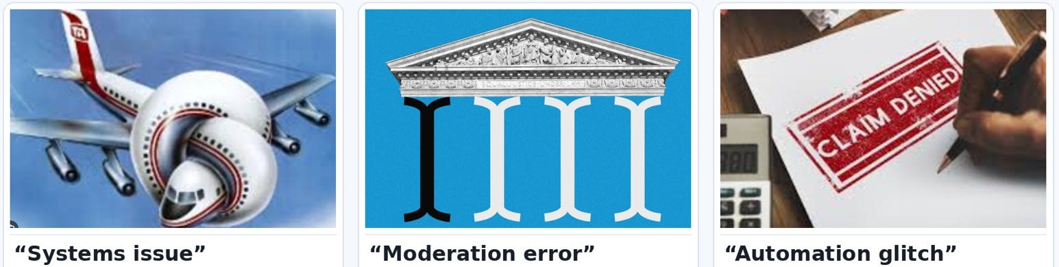 Platforms call it a “moderation error” when abuse stays up, and legitimate speech gets swept out, as if thresholds and escalation paths were set by woodland spirits.