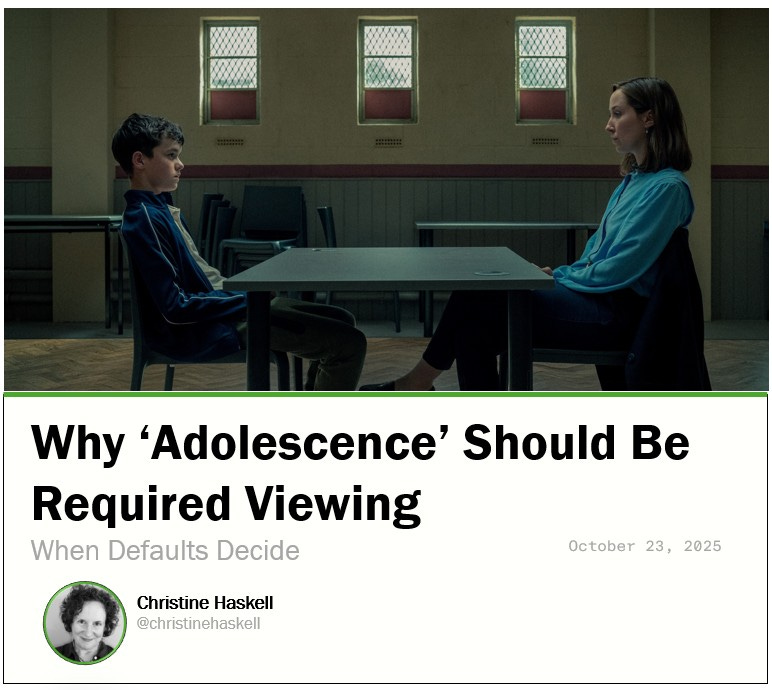 Adolescence punctures that delusion. A father must learn a new alphabet to understand his child’s world. Another family learns, too late, that quiet defaults can compound into catastrophic outcomes. This isn’t a story about monstrous people; it’s a story about ambient harm in systems that reward speed, reach, and secrecy.